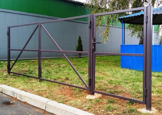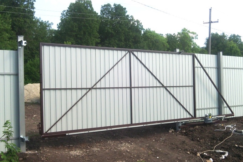 Конструкция откатных ворот такова, что функция открывания осуществляется сдвигом полотна ворот параллельно ограждению, что очень удобно в зачастую стесненных условия прилегающих к участкам подъездных дорог.